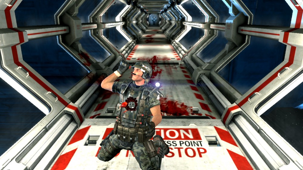 На самом деле очень прикольный скрин получился - солдат как будто выступает на рок-концерте, проехался такой на коленях по сцене, типа смотрите, какой я крутой! :D